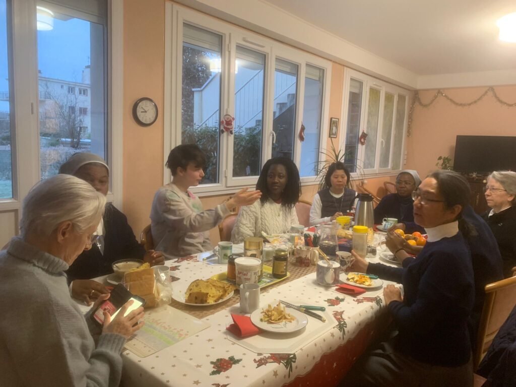 C’est le dimanche 28 décembre 2025, jour de la fête de la Sainte Famille, que nos chers frères et sœurs voisins européens ont été reçus dans nos maisons à Paris pour y vivre la 48ème rencontre européenne de Taizé ! Dans notre communauté, à Bourg-la-Reine, nous avons eu la joie d’accueillir deux religieuses d’Espagne et âgées d’une trentaine d’années, dont l’une d’entre elles était d’origine bolivienne : Sœur Clara et Sœur Cintia. De par les activités denses de la rencontre Taizé, nos moments passés avec elles ont certes été rares et de courte durée, mais fort sympathiques ! Les échanges m’ont permis de pratiquer les langues anglaise et espagnole, ainsi que de servir de “médiatrice” avec une Sœur pour la communication entre la communauté et nos invitées. D’autant plus qu’avant leur arrivée, nous ne nous attendions pas à accueillir deux religieuses, mais deux jeunes filles. Cela fait partie de l’expérience de la rencontre avec l’autre : on ne sait pas qui on va recevoir, mais on accueille les personnes que la Providence nous envoie et on apprend à se connaître mutuellement. C’est également l’expérience de l’Église universelle, et cette expérience s’est étendue plus largement jusque dans nos paroisses ! En effet, à la paroisse de Bourg-la-Reine, j’ai pu participer à des Messes dites en trois langues (français, polonais, espagnol), ainsi qu’à des temps de prière et de méditation de la Parole de Dieu avec nos frères et sœurs protestants, animés par des chants de Taizé. Ces temps de prière œcuméniques et multilingues, dans l’esprit de la communauté de Taizé, communiquent leur force à travers leurs dimensions intime et collective ; des prières courtes et simples chantées à la première personne du singulier, semblables à des prières jaculatoires, et répétées par toute l’assemblée, quels que soient notre état de vie, notre origine, notre âge, notre confession chrétienne… Nous sommes un dans l’Un. Enfin, j’ai pu participer à un atelier à l’église Saint-Merry située dans le 4ème arrondissement à Paris ayant pour intitulé “Les nouveaux saints contemporains : quelles figures de sainteté peuvent nous inspirer aujourd’hui ?”, une table ronde organisée par Père Philippe Perraud de la communauté de Sant’Egidio et curé de la paroisse et Père Xavier de Verchère, Salésien de Don Bosco et aumônier national des Scouts et Guides de France. Ils ont évoqué les exemples de Floribert Bwana Chui, un martyr qui a lutté contre la corruption en vivant fidèlement de l’Évangile, et des 14 jeunes Scouts français martyrs du nazisme et béatifiés en décembre dernier par le Pape Léon XIV. Un encouragement pour nous à rester attachés au Christ dans l’unité de Son Église !